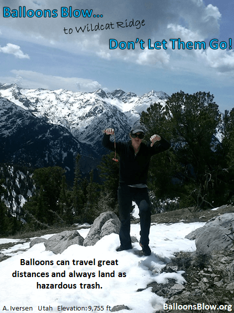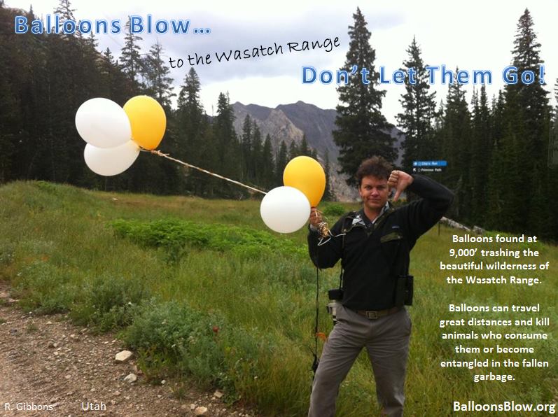 Our friend Richard in Utah removed this heinous bunch of latex balloons polluting the beautiful Wasatch Mountains. Nice save!
