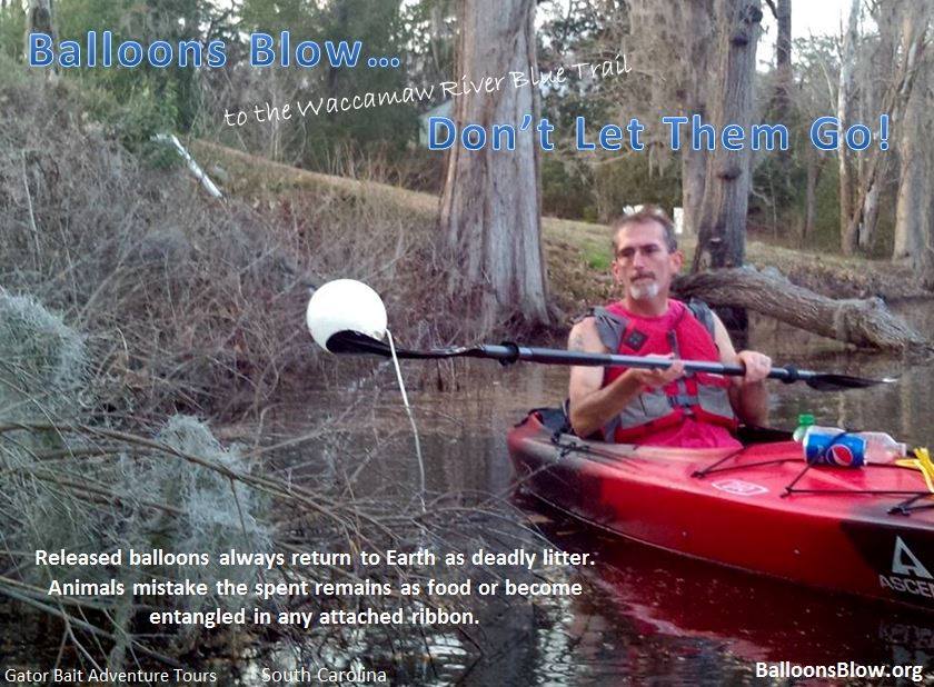 Our friend Chris at Gator Bait Adventure Tours in South Carolina found this balloon polluting the beautiful Waccamaw River Blue Trail. Nice save! Much respect for taking care while you're out paddling!
