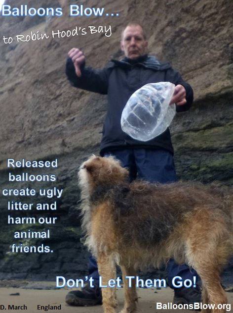 Our friends David & Natty in England found this balloon trash on a cold day at beautiful Robin Hood's Bay. Nice catch!
