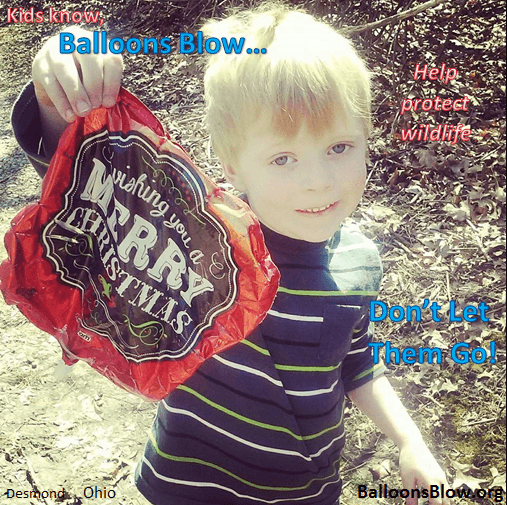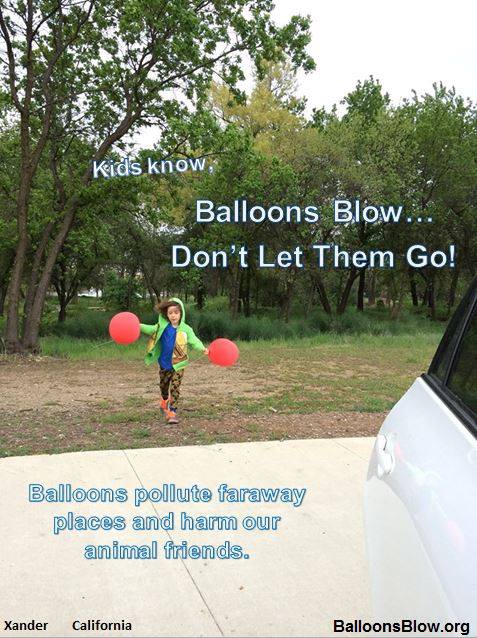 Our little Earth Warrior friend Xander in California spotted these balloons polluting his neighborhood riverfront park & had his Dad stop the car so he could retrieve them. Nice job!