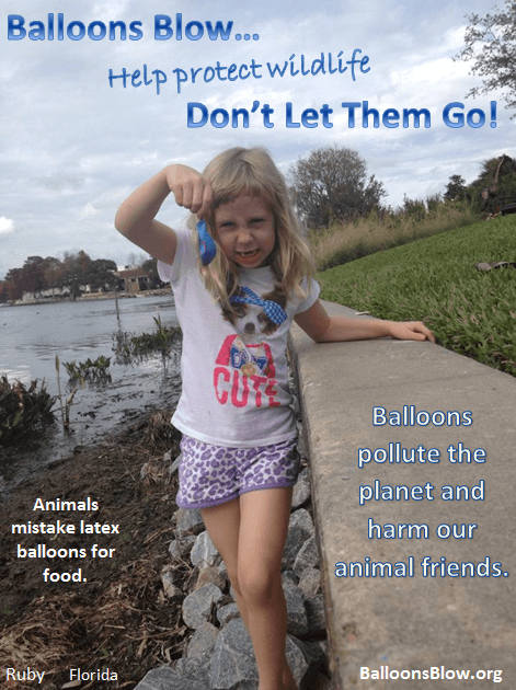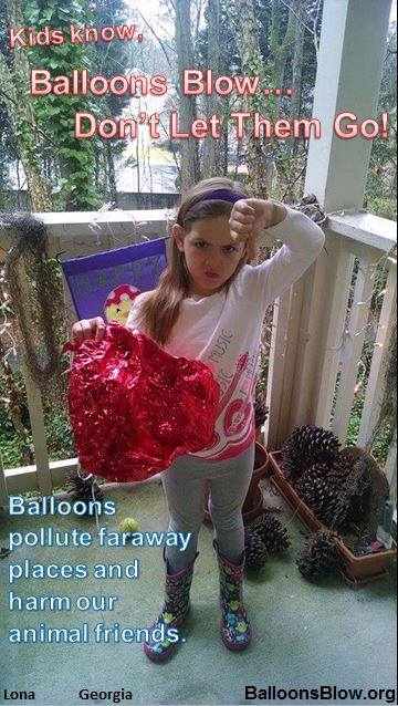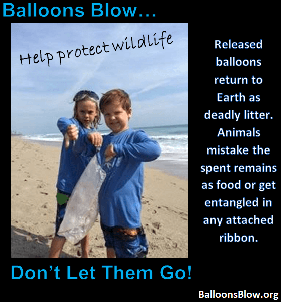 Our little friends in Florida know Balloons Blow! They found this balloon recently while at beautiful Hutchinson Island. Nice save! Thumbs down to balloons, thumbs up to you!