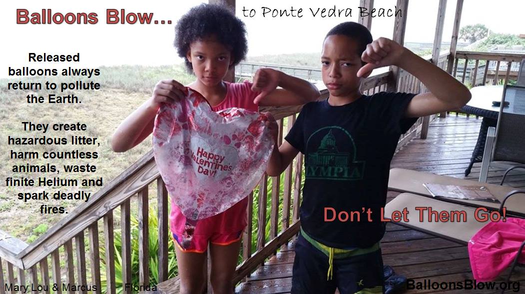Our friends Mary Lou & Marcus are new to Florida, where they found this balloon trashing Ponte Vedra Beach. They promise to do their part for Florida's beaches & help spread the word!