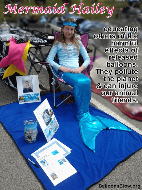 Our friend Mermaid Hailey helps educate others of the harmful effects of balloon releases during an event at the local high school. She also collected donations to help fund our new Balloons Blow billboards. Much respect, lovely mermaid, we can't thank you enough!