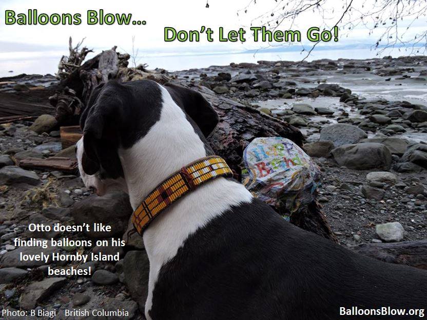 Our friends Otto & Barb found this balloon polluting the beautiful beach in British Columbia, endangering the Hornby Eagles & other local wildlife. Good catch!